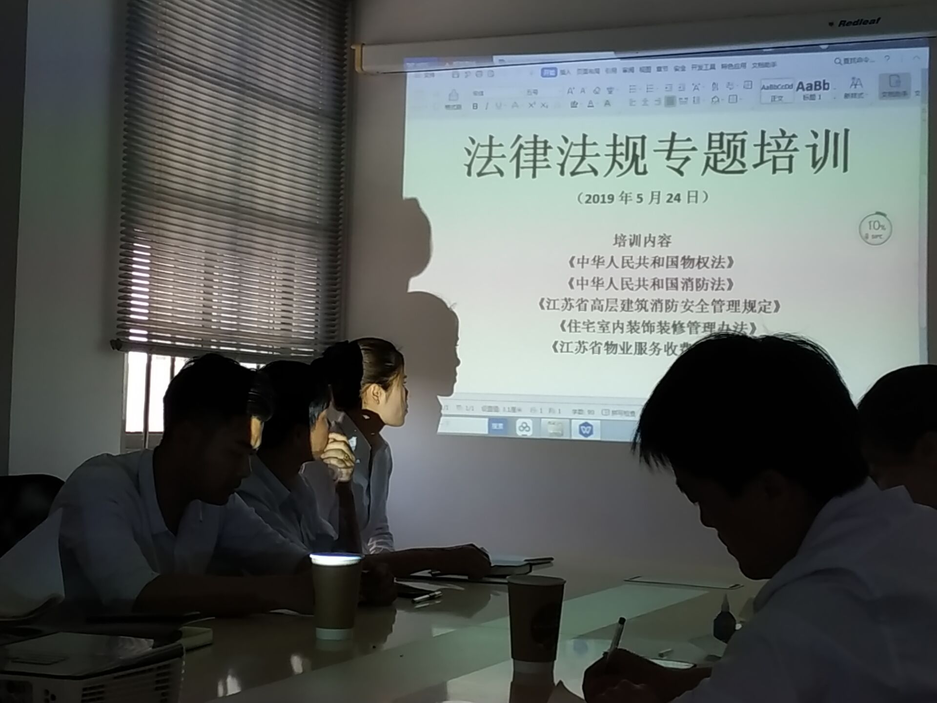 本次培訓(xùn)的內(nèi)容主要有:《中華人民共和國(guó)物權(quán)法》、《中華人民共和國(guó)消防法》、《江蘇省高層建筑消防安全管理規(guī)定》 、 《住宅室內(nèi)裝飾裝修管理辦法》 、 《江蘇省物業(yè)服務(wù)收費(fèi)管理辦法》等五部法律法規(guī)。 培訓(xùn)結(jié)束后,結(jié)合管理項(xiàng)目及崗位的實(shí)際情況,對(duì)全體物業(yè)管理人員進(jìn)行了法律法規(guī)基本知識(shí)技能的現(xiàn)場(chǎng)的考試,使大家在日后的工作中能更好的服務(wù)業(yè)主客戶(hù)。 |