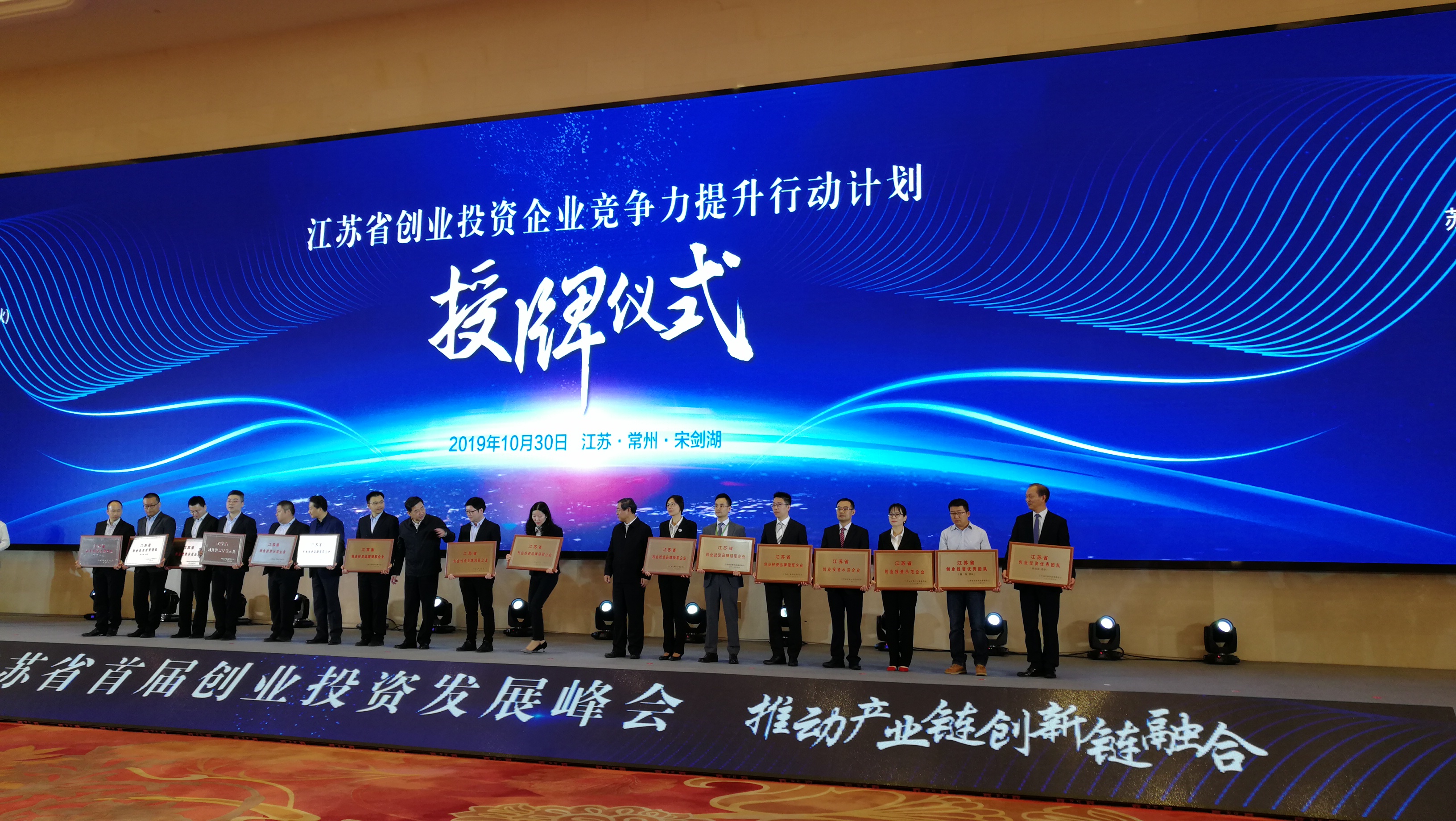 10月29日,省發(fā)展和改革委員會(huì)公布《2019年省創(chuàng)業(yè)投資企業(yè)競(jìng)爭(zhēng)力提升計(jì)劃及創(chuàng)業(yè)投資示范載體建設(shè)工程認(rèn)定名單》,南通投資管理公司子公司南通科技創(chuàng)業(yè)投資管理有限公司榮獲2019年度“江蘇省創(chuàng)業(yè)投資優(yōu)秀團(tuán)隊(duì)”稱號(hào)。10月30日,產(chǎn)控集團(tuán)副董事長(zhǎng)顧建國(guó)、投資管理公司副總經(jīng)理王劍鋒赴常州參加江蘇省首屆創(chuàng)業(yè)投資發(fā)展峰會(huì)暨認(rèn)定授牌儀式。