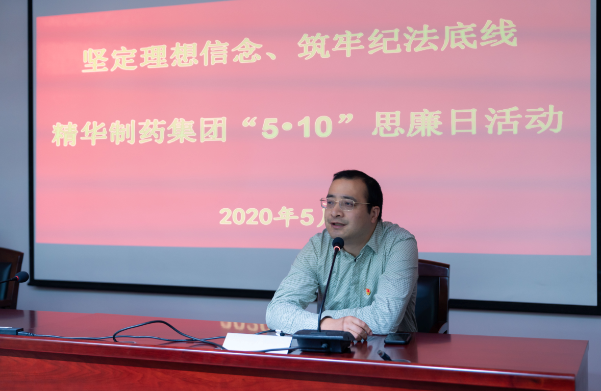 5月11日下午,精華制藥集團(tuán)黨委在三樓會(huì)議室組織開展“精華制藥‘5?10’思廉日”警示教育和黨委書記上廉政黨課活動(dòng)。參加本次活動(dòng)的有集團(tuán)直屬支部、制劑生產(chǎn)支部、制劑銷售支部和原料藥第一黨支部的黨員干部職工。黨委副書記錢衛(wèi)峰主持了本次活動(dòng)。