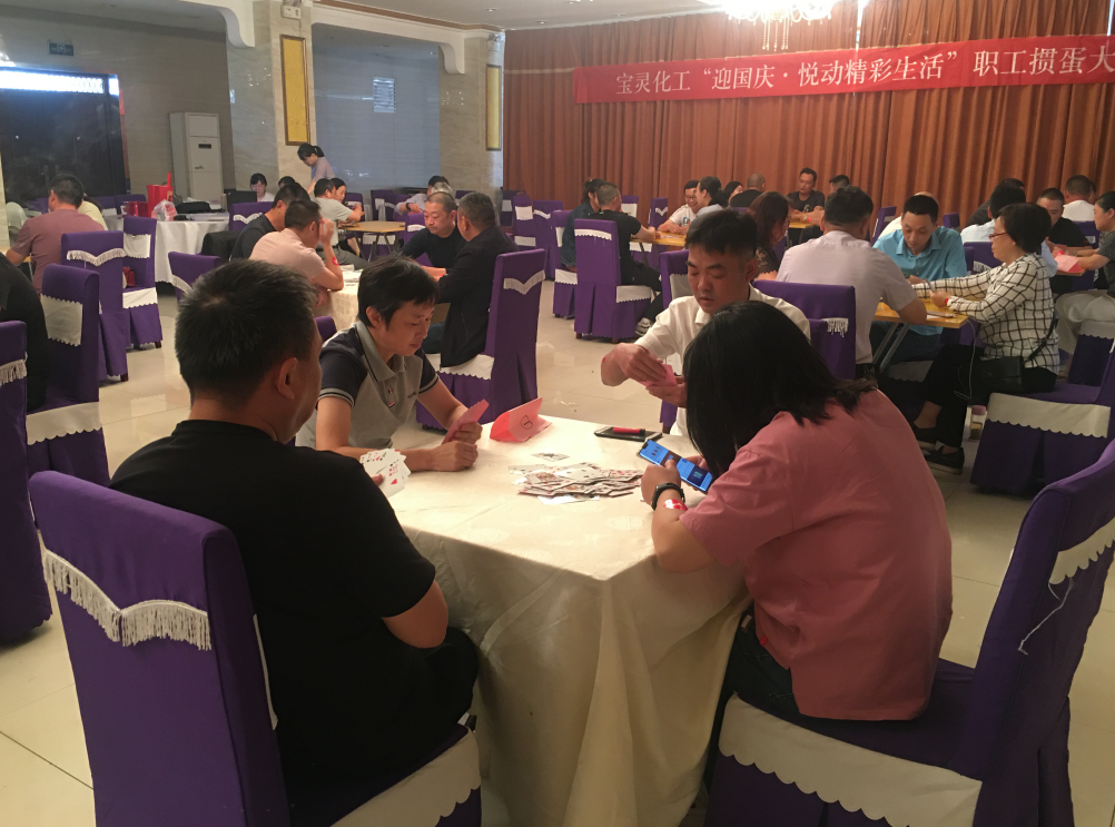 一年一度的國慶、中秋佳節(jié)將至,為慶祝新中國成立71周年,進(jìn)一步提升寶靈群眾性文化活動(dòng)的廣泛參與性,豐富和活躍職工的業(yè)余文化生活, 經(jīng)公司黨委研究,決定繼續(xù)舉辦寶靈化工“迎國慶·悅動(dòng)精彩生活”職工摜蛋大賽。各車間、部門高度重視,積極發(fā)動(dòng)并踴躍報(bào)名,共有44名選手參賽。