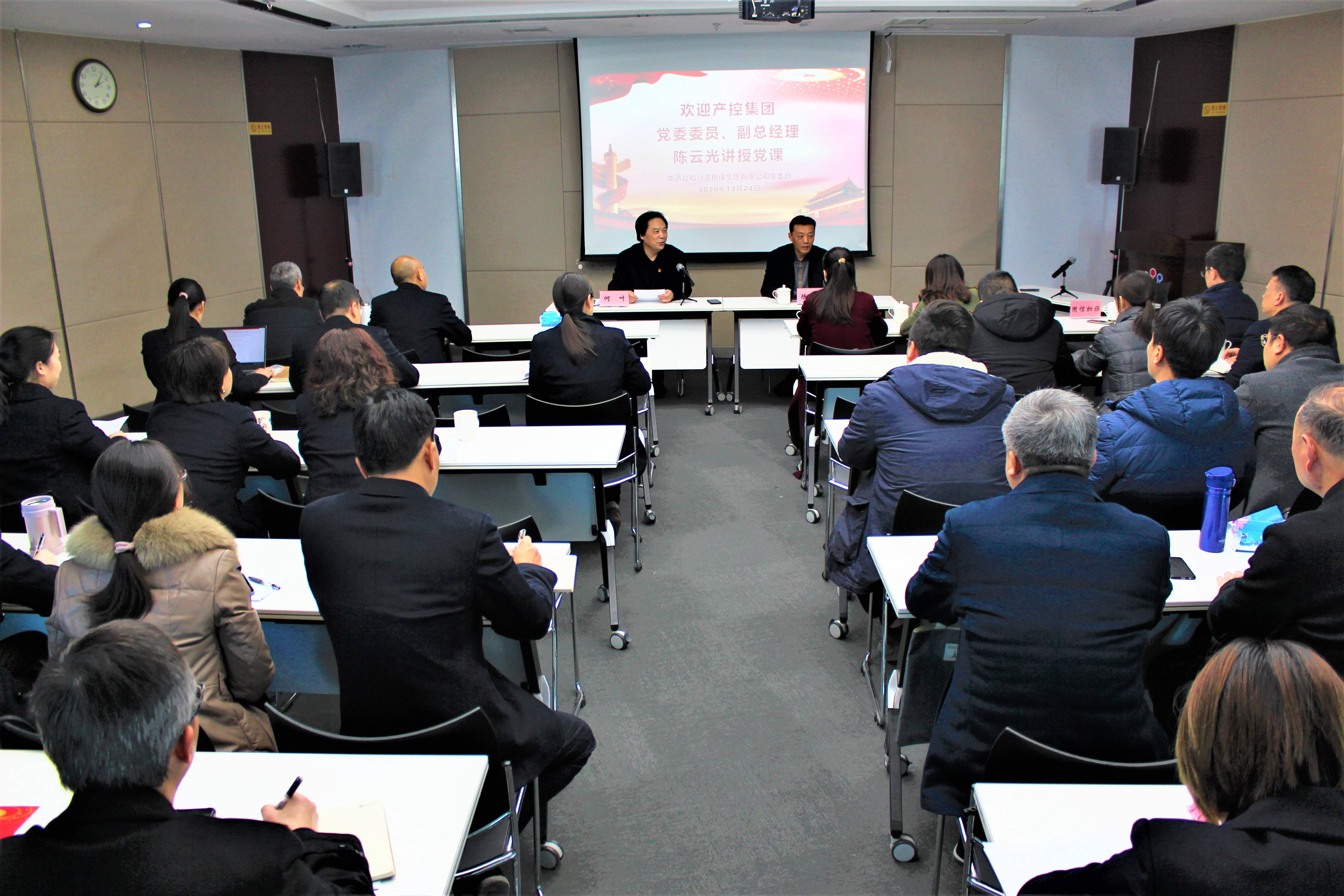 12月24日下午,根據(jù)精準(zhǔn)警示教育活動(dòng)計(jì)劃安排,南通眾和融資擔(dān)保集團(tuán)有限公司黨支部開展精準(zhǔn)警示教育專題黨課,邀請產(chǎn)控集團(tuán)黨委委員、副總經(jīng)理陳云光同志為支部全體黨員、入黨積極分子、中層以上干部及子公司領(lǐng)導(dǎo)班子成員講授黨課,產(chǎn)控集團(tuán)財(cái)務(wù)部及國信擔(dān)保黨支部全體黨員干部一起聆聽了黨課。