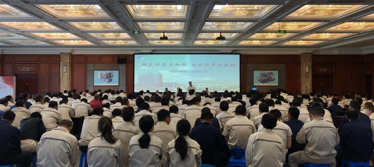 最后,總經(jīng)理來逢政在大會上發(fā)表講話,首先肯定了自公司成立以來,從最初的組建走向成熟所取得的進步及成績,他指出公司在2020年市場大環(huán)境惡劣的情況下還能逆勢發(fā)展與公司每一位員工的努力付出密不可分。今年公司面臨的內(nèi)外部市場交付壓力更大,對生產(chǎn)效率、服務(wù)質(zhì)量也提出了更高的要求,與此同時也伴隨著更大的發(fā)展?jié)摿蜋C會,公司上下要擰成一股勁,保質(zhì)保量的按時交付訂單,提升公司的生產(chǎn)規(guī)模,穩(wěn)定生產(chǎn)車間的產(chǎn)值效益,提高職工收入水平,讓每位員工獲得發(fā)展機會,和金通靈共同成長。 |