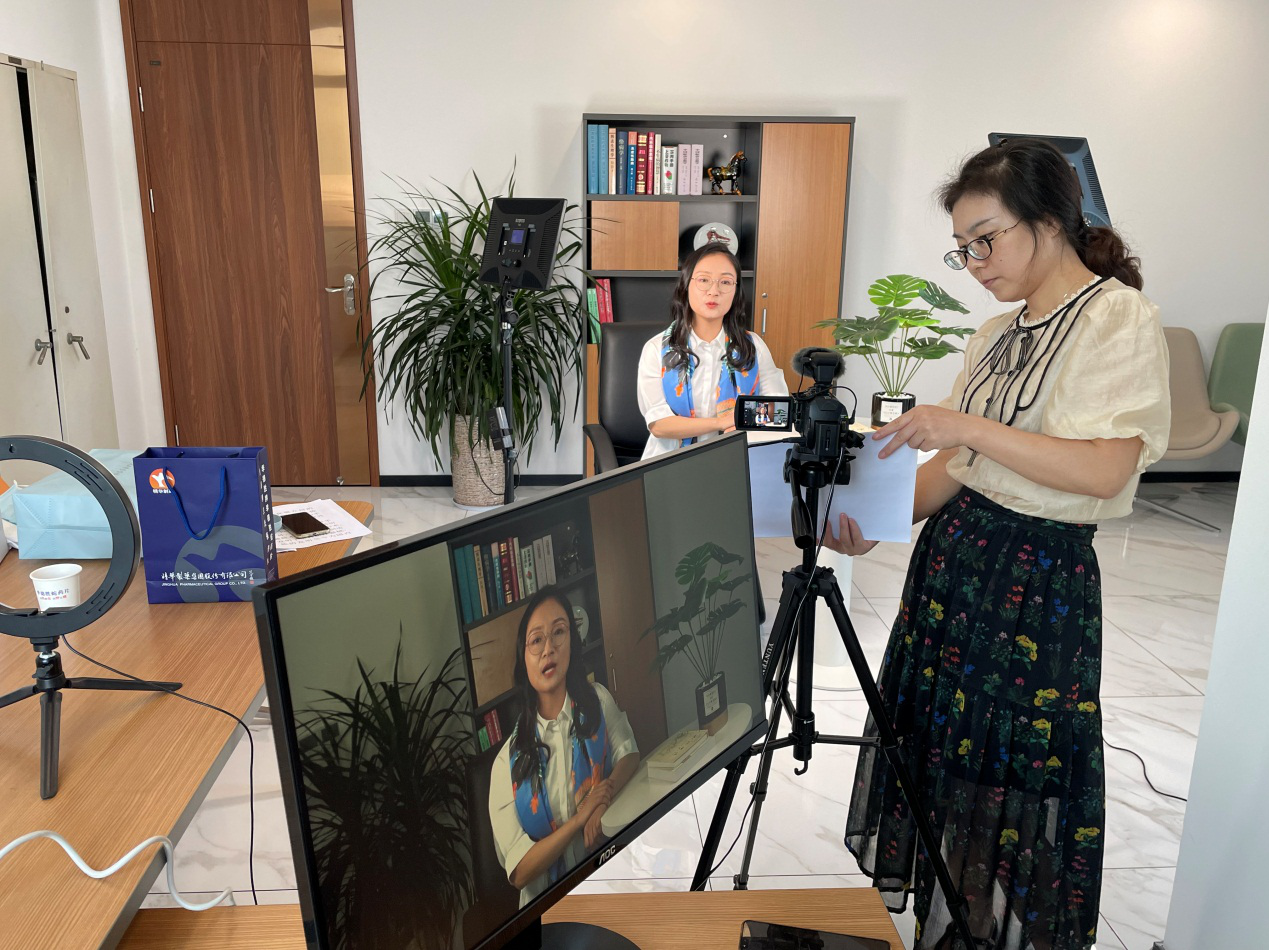 “哈嘍大家好,我是金花吳藥師!”伴隨著極具辨識度的招呼聲,放眼望去端坐在鏡頭前的是精華制藥集團制劑生產(chǎn)分公司副總經(jīng)理吳玉榮。