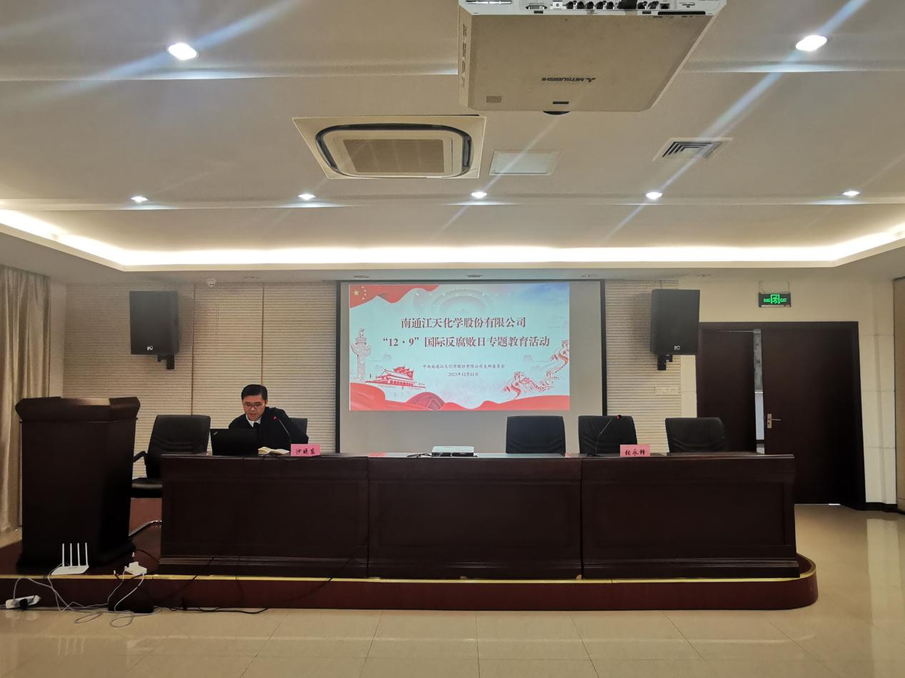 為持續(xù)筑牢公司廣大黨員干部群眾廉潔從業(yè)風險底線意識,12月11日下午,南通江天化學(xué)股份有限公司黨支部組織召開“12·9”國際反腐敗日專題教育活動。會議由黨支部書記、副總經(jīng)理張永鋒主持,公司全體黨員、管理人員及相關(guān)部門人員參會。