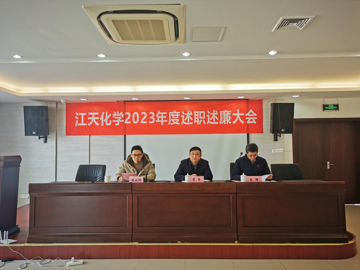 為認真總結好2023年各方面工作,科學謀劃好2024年各項目標任務,1月23日下午,江天化學召開2023年度領導班子述職述廉會議。產控集團黨委委員、副總經理黃亮出席會議。公司領導班子全體成員、各級管理人員等30余人參加了會議,會議由公司黨支部書記、副總經理張永鋒主持。