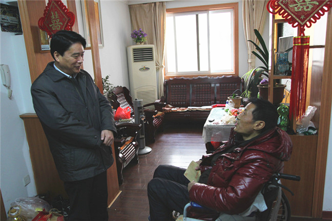 杜永朝一行來(lái)到虹橋新村,看望慰問(wèn)了江山股份公司困難職工李進(jìn)全,并送上了慰問(wèn)金及油、米、水果等慰問(wèn)品,杜永朝詳細(xì)詢問(wèn)了李進(jìn)全的生活起居、身體狀況和家庭情況,并叮囑他要保重身體,鼓勵(lì)他要有信心戰(zhàn)勝眼前困難,努力把生活過(guò)得越來(lái)越好。他要求江山股份公司工會(huì)要把困難群眾的冷暖掛在心上,努力幫助困難職工渡過(guò)難關(guān),讓困難職工共享經(jīng)濟(jì)社會(huì)發(fā)展成果,早日過(guò)上幸福美好的生活。